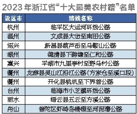 日前,浙江省交通运输厅公布了2023年度浙江“十大最美农村路”名单。杭州临平区大运河环线公路、温州文成县大峃至南田公路、绍兴新昌县葫芦岙至马鞍山公路等10条公路上榜。