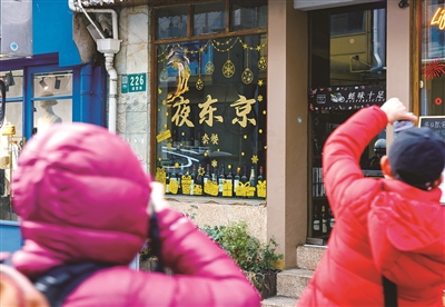 一家店贴出了夜东京套餐,不少市民过来观望。