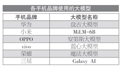 各手机品牌使用的大模型