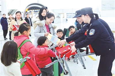 “免费理个发、领个福字,再上车回家,新年的幸福感一下子就出来了!”这几天,杭州东站、杭州西站等火车站里,有铁路职工、志愿者、社区书法爱好者在候车大厅给广大旅客赠送春联、福字。杭州东站候车大厅里还可以免费理发,让旅客的归途也能变成“容光焕发”。
