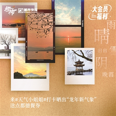 从2月1日开始,一直到2月24日元宵节,龙年伊始的天气怎么样?欢迎来橙友圈#天气小姐姐#话题发帖,每天打卡晒出你所在城市的天气,配上简单的坐标、文字说明,并带上标签#龙年新气象#。最终我们会从活动期间(2月1日至24日)打卡满15天及以上的橙友中,综合考虑阅读量、点赞量、发帖质量,选择其中的8位,每人送100元点都德餐券一张。
