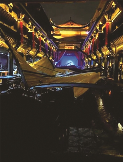 湖南省张家界市永定区七十二奇楼景区茶楼的雨棚3日晚发生坍塌,砸伤了多名观众。