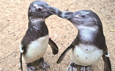位于英国萨里郡的法纳姆鸟类世界是英国最大的鸟类公园,里面生活着53只十分珍稀的非洲企鹅。它们之中有一对特别的朋友——名为“鱿鱼”和“企鹅”。“鱿鱼”2020年出生时,就患上了白内障,因为视力问题,没法看清食物,所以每到饭点就会茫然地跌跌撞撞。虽然赶不上用餐大部队,“鱿鱼”却在“企鹅”的帮助下,从没落下过一顿饭。每次吃饭时,“企鹅”都会带着“鱿鱼”贴着外圈栏杆,慢慢走到饲养员面前,然后它会站在桶边,引导着“鱿鱼”的喙,帮它找到桶里的小鱼。