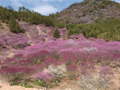 径山阳坡洪村,梅花开满山坡。记者 夏阳 摄