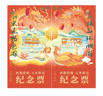 杭州市西湖游船有限公司将面向社会公开发行2024年“元宵”限定纪念船票共计376份,包含两条线路两个版本:“饮湖上·宋风特色游”限定船票发行码头为五公园游船码头,上午9时起售;“饮湖上·精品环湖游”限定船票发行码头为中山公园游船码头,上午10时起售。活动当日,凡于线路营运时间内前往指定活动码头,现场购买任一线路船票游客(不限地区),将有机会获赠杭州市西湖游船有限公司2024年“元宵”限定纪念船票一张,获赠船票版本与购买船票线路相对应。数量有限,先到先得,赠完即止。
