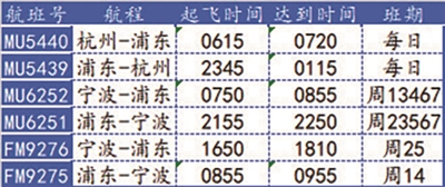 2月23日起,东航新增杭州-浦东的往返直飞航班,每天飞一班。4月1日起加宁波-浦东航班每天一班。