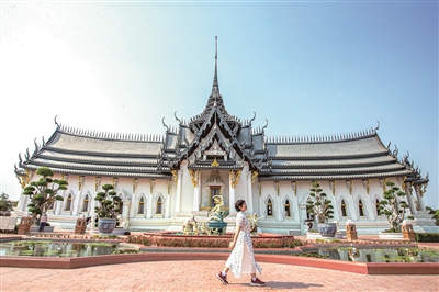 3月1日,中国游客在泰国北榄府爱侣湾博物馆游览。