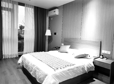 记者和小陈一起走进公寓,35平方米的房间内,空调、电视机、衣柜、床、书桌、晾衣架、独立Wi-Fi等设施一应俱全,且每间均配有独立卫生间和热水器。