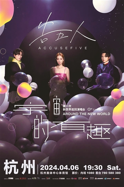 杭州今年井喷的演唱会又多了一场:告五人第一次新世界巡回演唱会“宇宙的有趣”杭州站。这是告五人乐队的第一次杭州大型个唱,到时将把杭州奥体中心体育馆变成银河系。