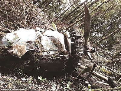 当地人说,他们几代人都听说过坠机的故事。“我们的祖父母给我们讲过故事,说一架飞机在丛林坠毁了,但不知道确切地点。”当地人基拉拉·金道说,他们去年12月底开始在丛林搜索,寻找飞机,今年1月找到了飞机残骸。图片显示,引擎、螺旋桨和碎片散落一地。