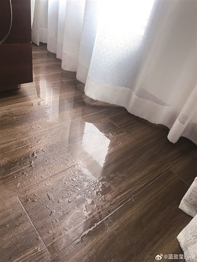 她拍出的地板照片看似是漏雨,实际则是广东回南天的日常。