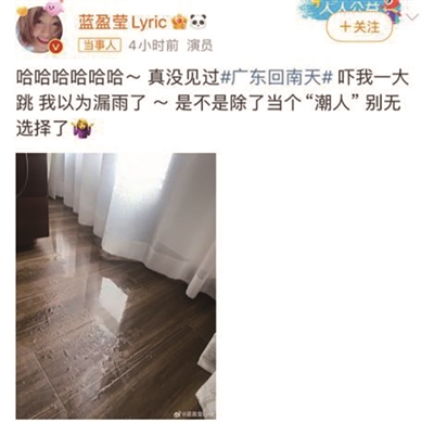 昨天,《甄嬛传》女演员蓝盈莹发微博晒出一张满地是水的照片,惊呼“真没见过”。