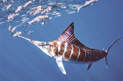 条纹四鳍旗鱼是海洋中的顶级掠食者之一。在集体狩猎时,它们会轮流攻击目标鱼群,而且一次只有一条发动攻击。那它们是如何协调轮流攻击猎物,以避免伤害同伴的?一项新研究显示,这一协调机制的关键在于它们颜色的快速变化。