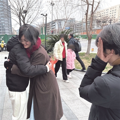 考虑到小凤方便,他们找了离小凤校园比较近的饭店。隔着马路,小凤的亲生爸爸姜先生冲我们招手,一见女儿,就紧紧抱住。这个坚定的拥抱,小凤等了7年。