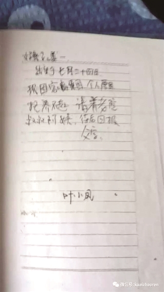 我和姜先生打电话,姜先生说在网上看到我们关于小凤的报道,觉得小凤就是自己的女儿,那张纸条是他临时写的,“边哭边写,心里很难受”……