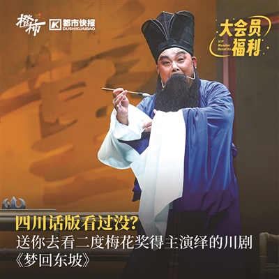来橙友圈#文艺show#发帖,带上#川剧#标签,我们将从发帖中选出发帖数量排名前十的10位橙友,每人送出3月19日19:30在浙江胜利剧院上演的川剧《梦回东坡》门票一张。