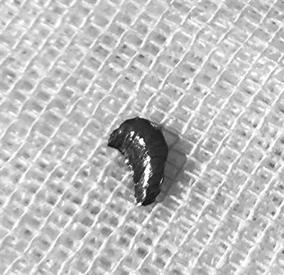 术中,杭州市红十字会医院眼科主任诸力伟主任医师缝合了破损的角膜,吸除了因损伤导致混浊的晶状体,并从眼内取出了一枚0.5cm×0.3cm×0.2cm的肾形铁片,比常人的瞳孔还要大!