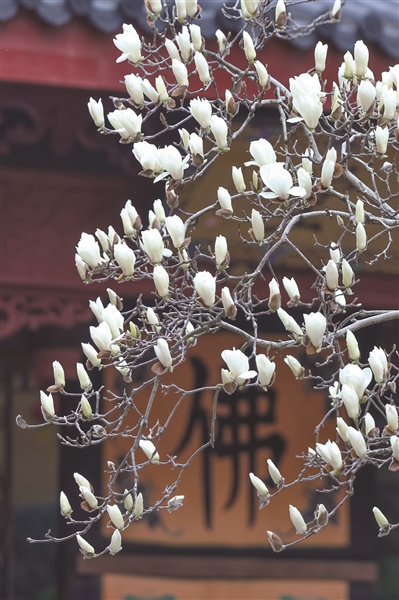 三座古寺,上天竺法喜讲寺在古道的尽头,这个春暖花开的日子里,寺里那株500多年的古玉兰,又开花了。
