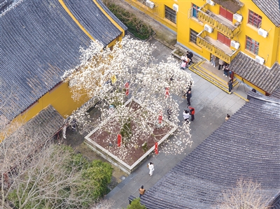 最近,古玉兰开花成为杭州春天的一个热门事件,很多人纷纷跑过来寻它。