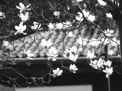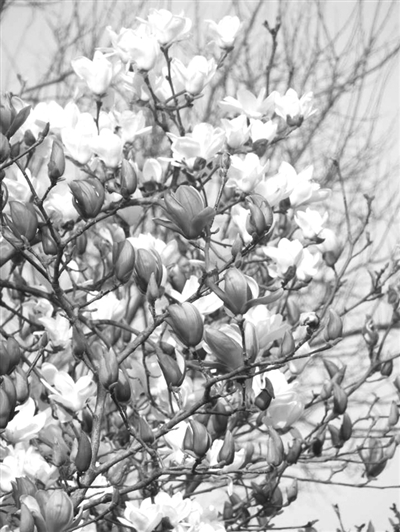 点评:现在正是玉兰花肆意开放的时候,白紫两色搭配,好看。