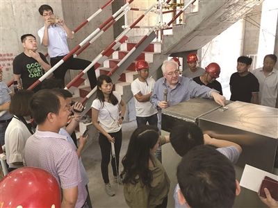 Stefan consults Chinese architects and workers at a construction site Photo provided to Hangzhoufeel
