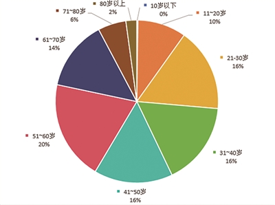 从就诊患者年龄来看,21-60岁的患者是主力军,其中,占比最多的年龄段为51-60岁,占20%,其次是21-30岁和31-40岁,各占16%。