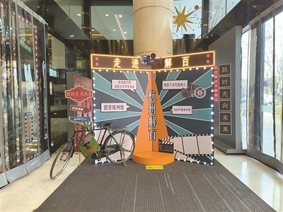 微展览就设在A座正门入口和前厅区域。你可以在复古墙前和老式自行车合影,也可以去老底子商店里的玻璃柜台打卡,在20世纪80年代的糖果铺里玩一把“古法”称重,赢一份小时候的零食。在自行车的对面,是解百百年历史回顾,这里有满满的历史细节,值得驻足看看。20世纪60-80年代的商场柜台是什么样子?这里都有真实照片带你“穿越”。当然,看过过往,也要畅想下美好未来。未来的解百,你希望会是什么样子?也可以在现场的“未来墙”上留言。