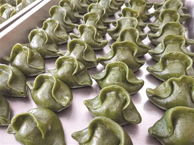 2.纯手工。每一个清明粿,都是柴大姐和阿姨们手工包的。
