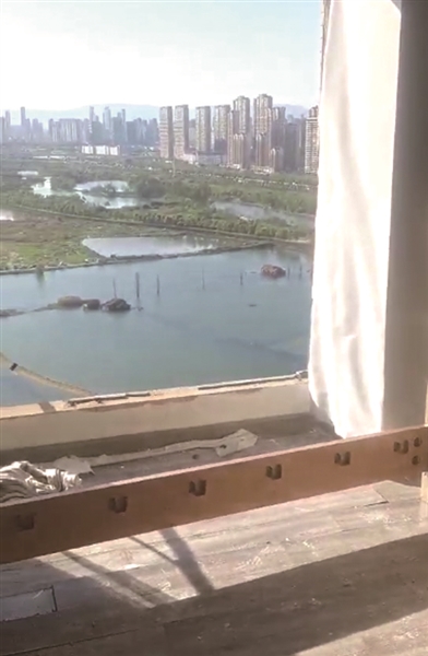小区开发商称,这个小区建成交付已有八九年,房屋不存在质量问题,交付时阳台为半封装状态,未安装窗框。