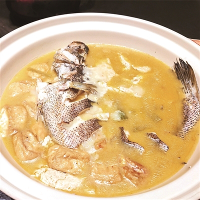 江米鱼的鱼冻饭,鱼冻做成鱼的形状,放在米饭上略微融化一点,拌起来,连鱼冻带着锅巴,鲜香得不得了,小时候的味蕾瞬间被唤醒。