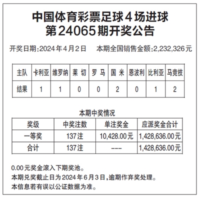 中国体育彩票足球4场进球