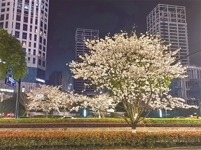橙友@我的小森林拍到的夜樱,是在地铁南苑站附近,沿着迎宾路,两边都种了不少樱花。@我的小森林说,每年这个时候,这里都挺适合拍照。她的家就在南苑站附近,每到春天樱花开了,她都要拍上几张,分享到橙友圈。