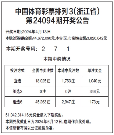 中国体育彩票排列3(浙江省)