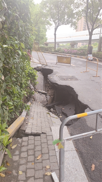 橙柿直通车记者联系上了橙友“龙豆豆”王女士。她说小区位于临平区乔司街道,是复地·连城国际花园,自己也是这个小区的业主。“塌陷的路段在11幢东侧,前一天傍晚我回家还好好的,早上10点半,业主群里就在传了。”