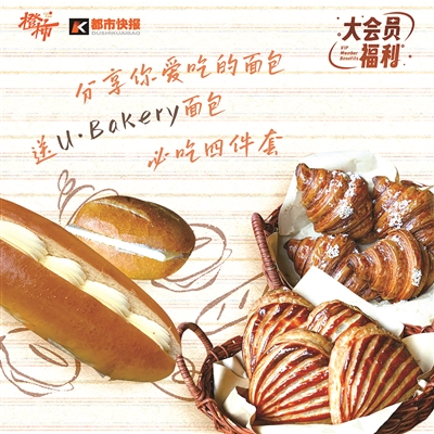 到橙友圈#杭州吃什么#话题下,以图片+文字的形式分享你爱吃的面包,记得带上#包治百病#标签。我们会综合发帖质量,选出20位橙友,每位将获得U·Bakery面包必吃四件套一份(内含苹果派、黄油小包、可颂、白脱奶油面包各一个)。