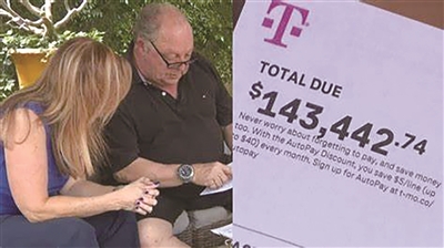 居住在美国佛罗里达州的雷内·雷姆德和妻子去年9月前往瑞士游玩。不过,他们没有注意到,自己手机账单上的数字飞涨。等到两人回到家,一张写着14.3万美元的账单寄到家里。两夫妻都被这个数字震惊到了。