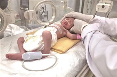 新生儿重症监护室主任穆罕默德·萨拉马说,小萨卜琳体重1.4公斤,“她的健康状况有了一些改善,但依然有生命危险”。