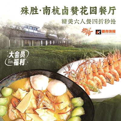 殊胜·南杭卤赞花园餐厅精美6人套餐,原价1049元,现价468元,共8份,可登录橙柿互动App,在“美食”频道找到相关文章参与秒抢。
