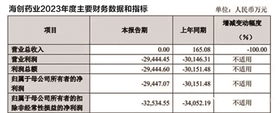 海创药业2023年年报显示,公司2023年全年营业收入为0,还不如街头一家小店。