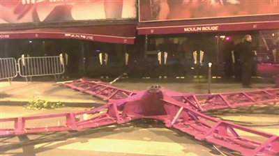 4月25日凌晨,巴黎地标建筑红磨坊歌舞厅风车发生叶片掉落事故,但没有造成人员伤亡。
