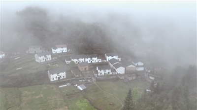 再往前走了1里左右,十八亩段村缓缓出现在视野里——小山村整个在山头的一块凹陷处,20多间农房,只见袅袅炊烟,却不见人影。