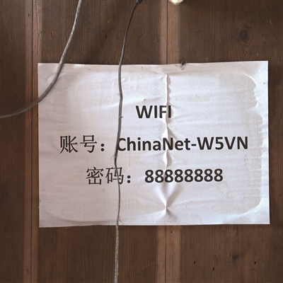 “你坐那里去,就能连上我家无线了,密码是8个8,我们村里所有人家的无线密码都是8个8,你随便连好了。”
