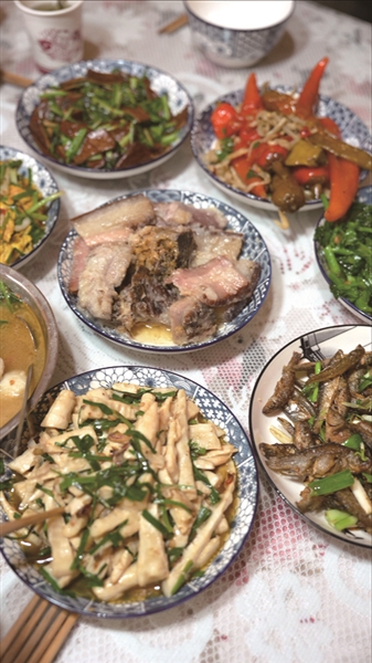 腌辣椒、粉蒸肉、溪鱼干、炒野笋…… 80元能吃9个菜