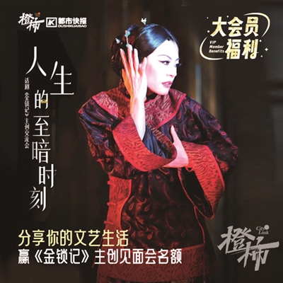 活动参与方式:带#金锁记#标签,来橙友圈#文艺show#话题发帖,分享你的文艺生活。
