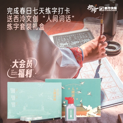 福利:我们将从完成7天练字打卡的参与者中,优选两位,每人送出一份西泠文创“人间词话”练字套装。