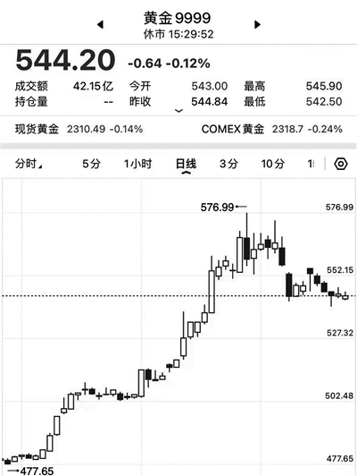 吴经理提到,自己和投资者从去年2月份开始定投,持有成本为430元/克,到今年3月以540元/克的价格全部脱手,赚了20%多。