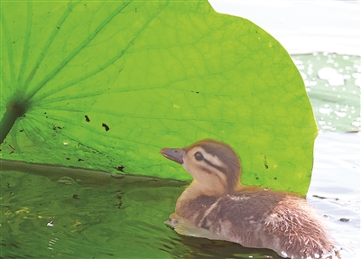 天气热,鸳鸯躲在莲叶下面。 橙友“玉峰观景” 摄