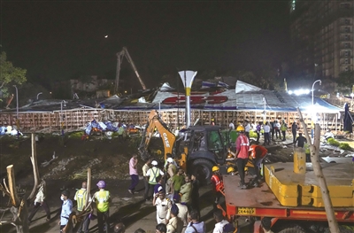 5月13日傍晚,印度最大城市孟买遭遇强风和雷暴天气,该市东部一家加油站广告牌倒塌,已造成14人死亡、至少70人受伤。