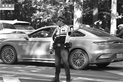 “老徐喊得最多的就是‘停’!”学校的门卫亲切地喊他“老徐”, 他说,学校大门离马路很近,又是通往景区的十字路口附近,车流量大,没有老徐的话,早晚高峰的道路交通肯定要乱套。