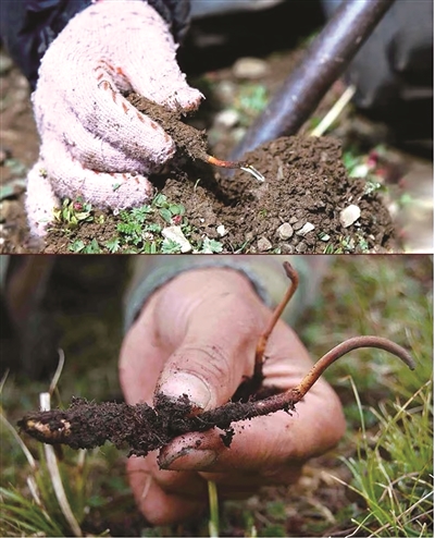头茬野生鲜虫草是指刚刚露出土表后的鲜虫草,这时虫与草的比例在1∶1左右,颜色金黄、草头短、虫体饱满,虫体内营养物质流失更少,适合鲜食。